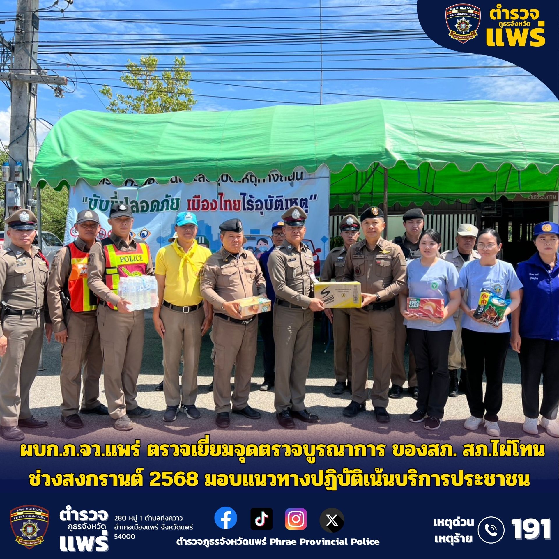 ผบก.ภ.จว.แพร่ ตรวจเยี่ยมจุดตรวจบูรณาการ ของ สภ.ไผ่โทน ช่วงสงกรานต์ 2568 มอบแนวทางปฏิบัติเน้นบริการปร