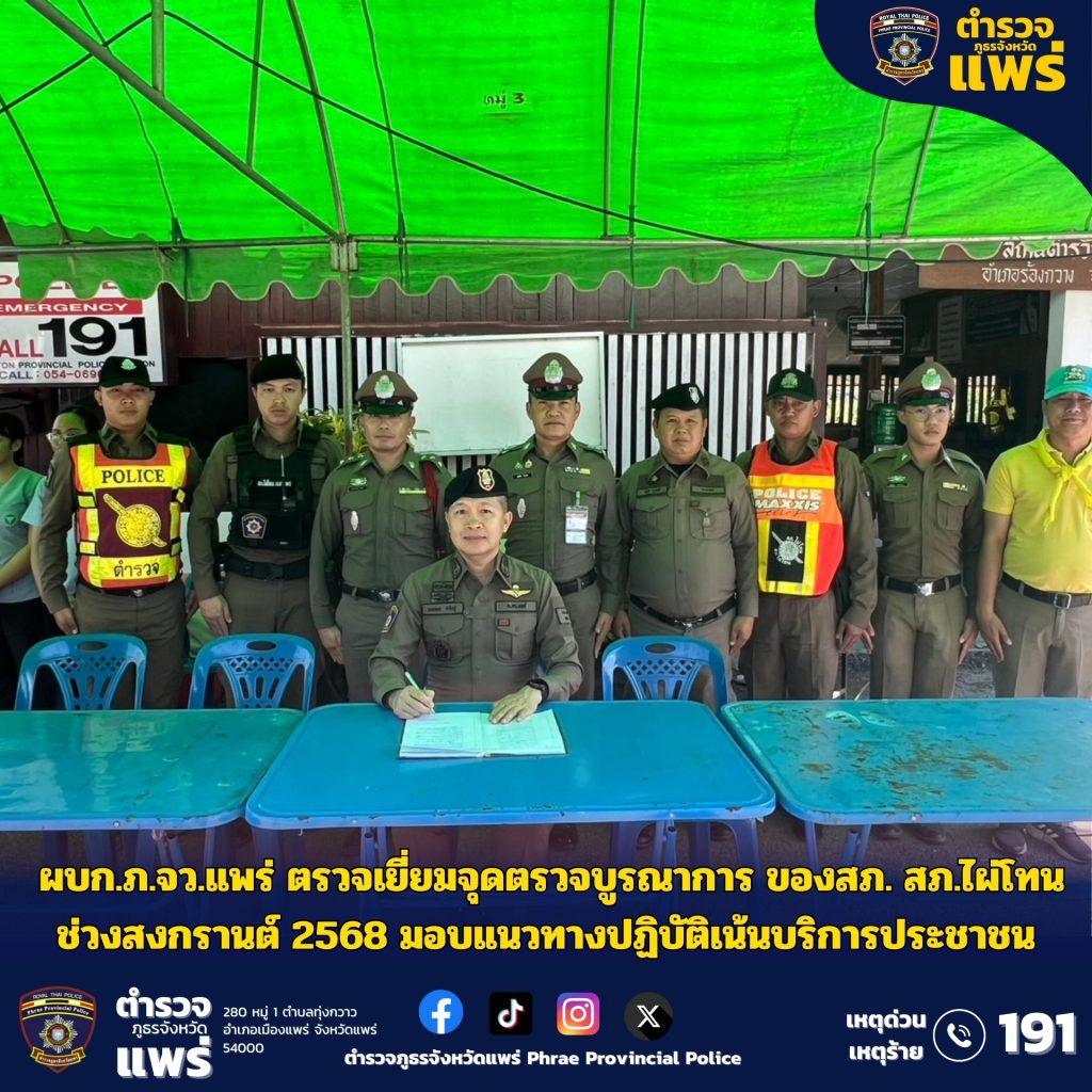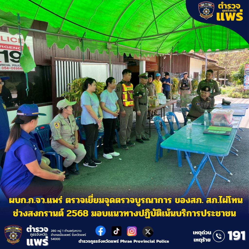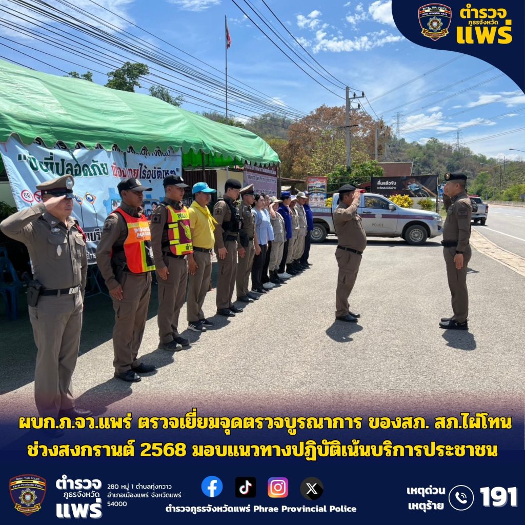 ผบก.ภ.จว.แพร่ ตรวจเยี่ยมจุดตรวจบูรณาการ ของ สภ.ไผ่โทน ช่วงสงกรานต์ 2568 มอบแนวทางปฏิบัติเน้นบริการประชาชน
