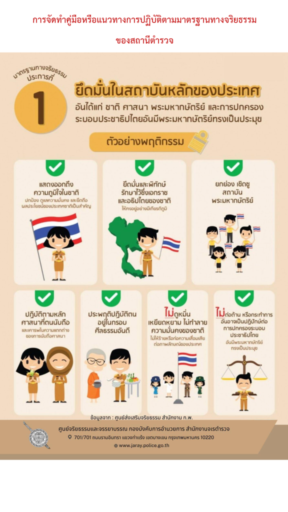 การจัดทำคู่มือหรือแนวทางการปฏิบัติตามมาตรฐานทางจริยธรรม ของสถานีตำรวจ