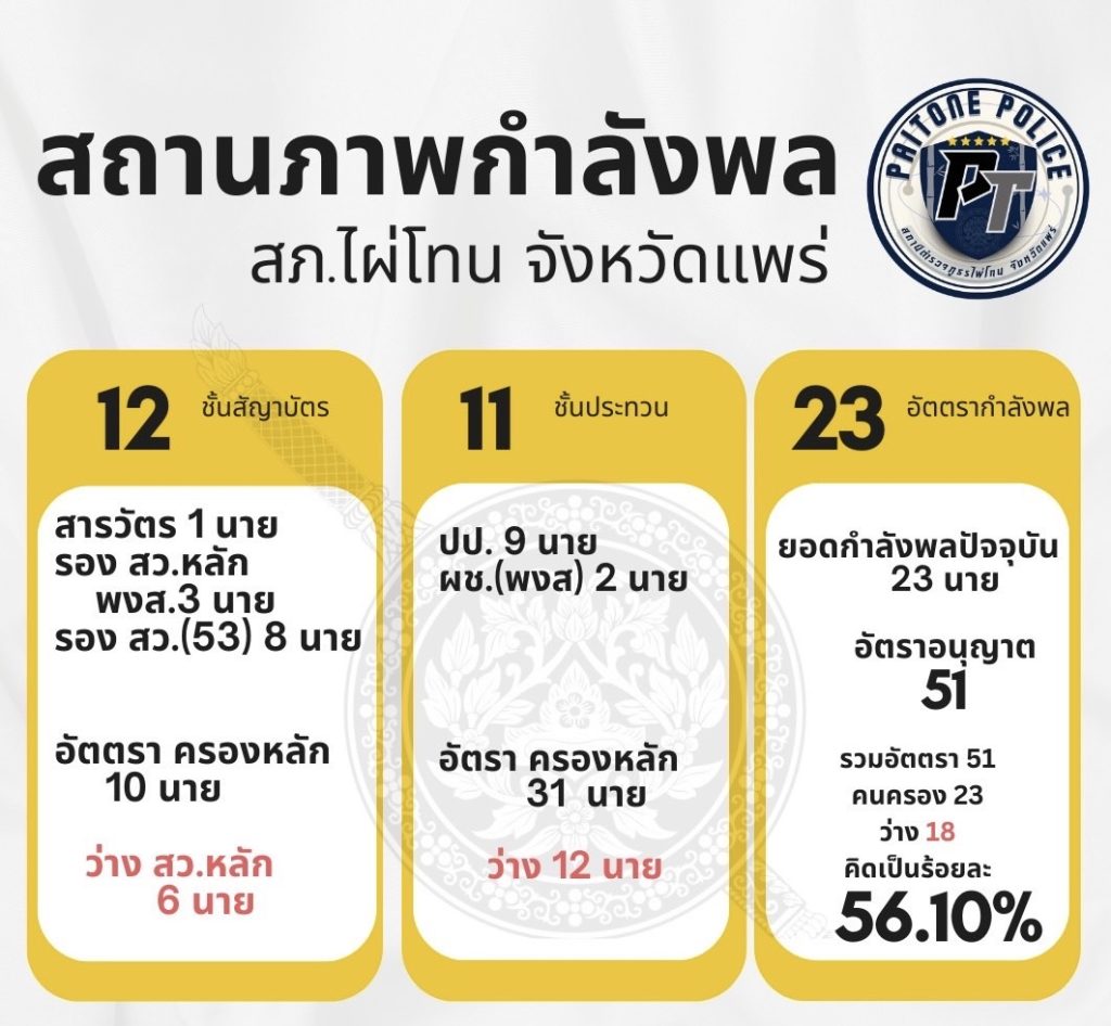 อัตรากำลังของสถานีตำรวจ ข้อมูล ณ 1 มกราคม 2568