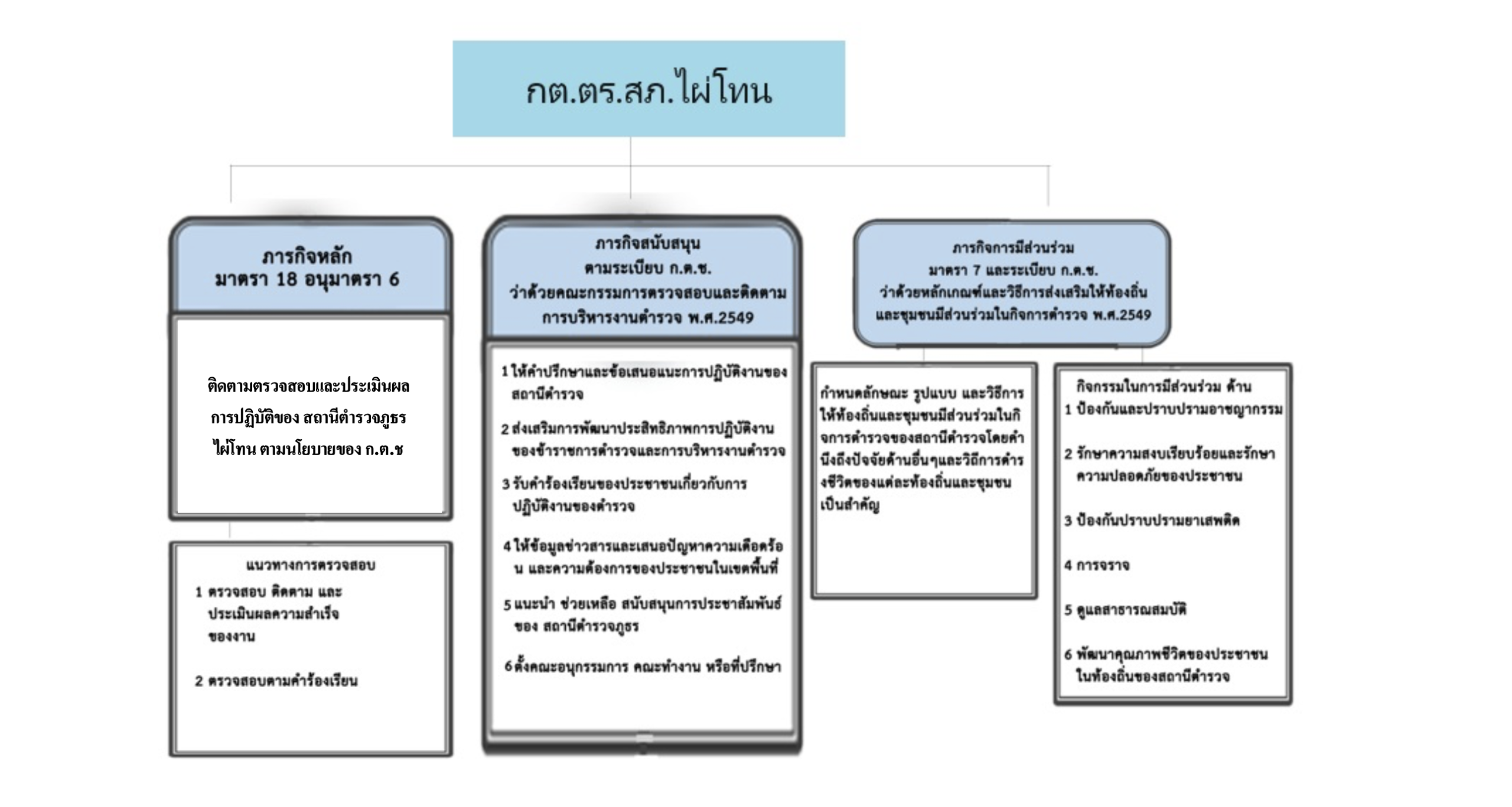 - ให้คำแนะนำและช่วยเหลือสนับสนุนการประชาสัมพันธ์งานของ สถานีตำรวจ