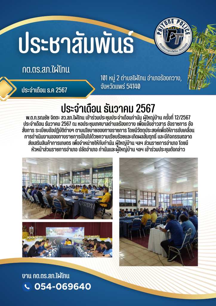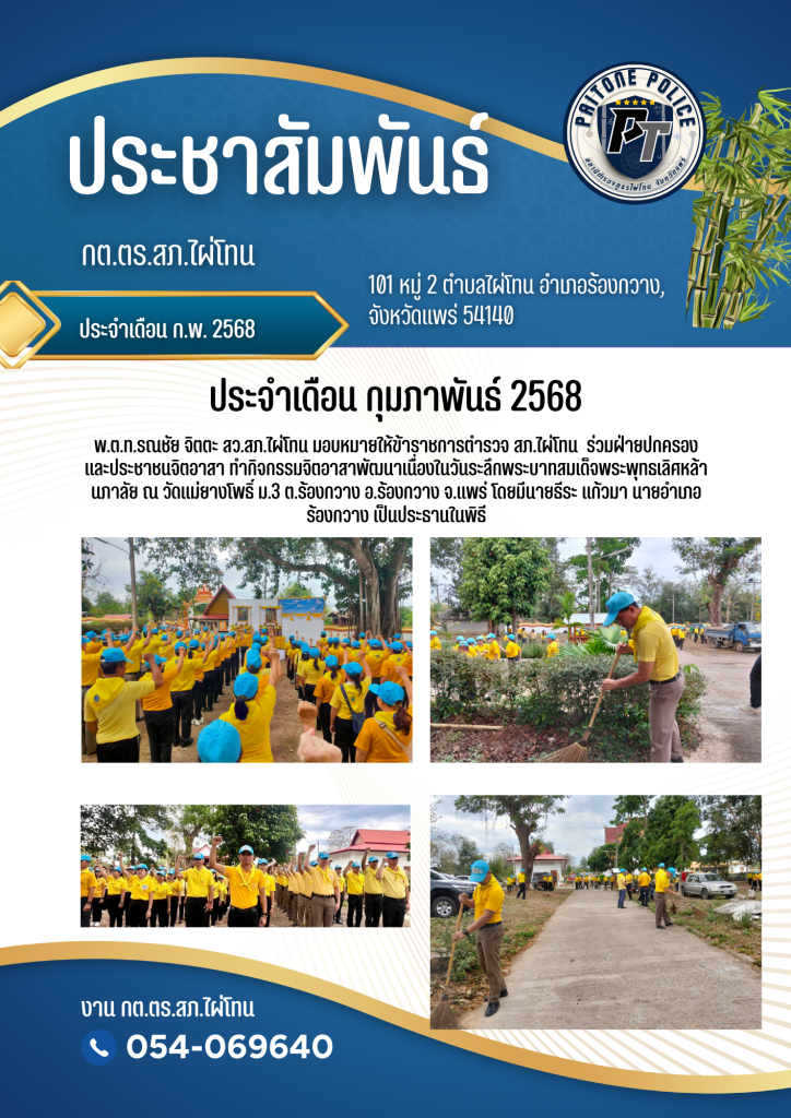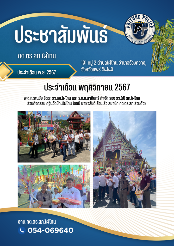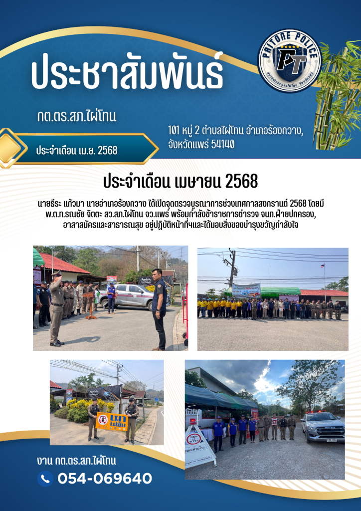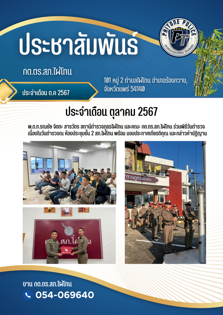 ผลการดำเนินงานของ กต.ตร.สถานีตำรวจภูธรไผ่โทน 6 เดือนแรกของปีงบประมาณ 2568 (ตุลาคม67 – มีนาคม68)